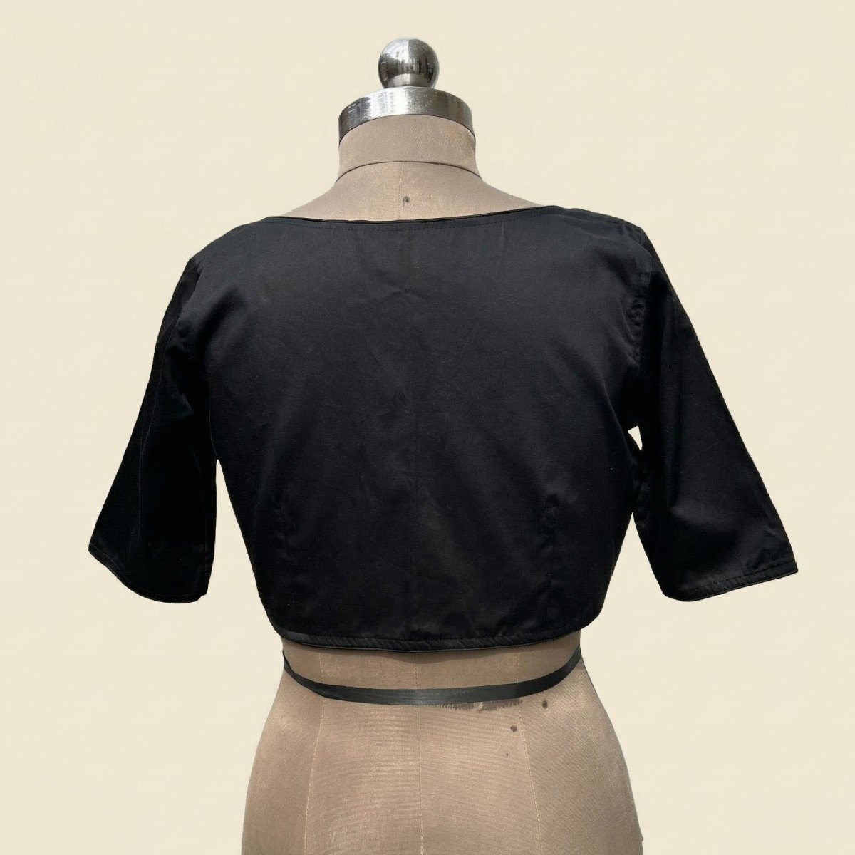 Non-padded satin cotton blouse with a stylish paan gala neckline and a clean, plain design—perfect for an elegant everyday or occasion look.Ready size for the blouse is bust 38 and waist 34, extendable up to bust 40 and waist 38.