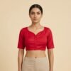 Red Satin Cotton Paan Gala Blouse