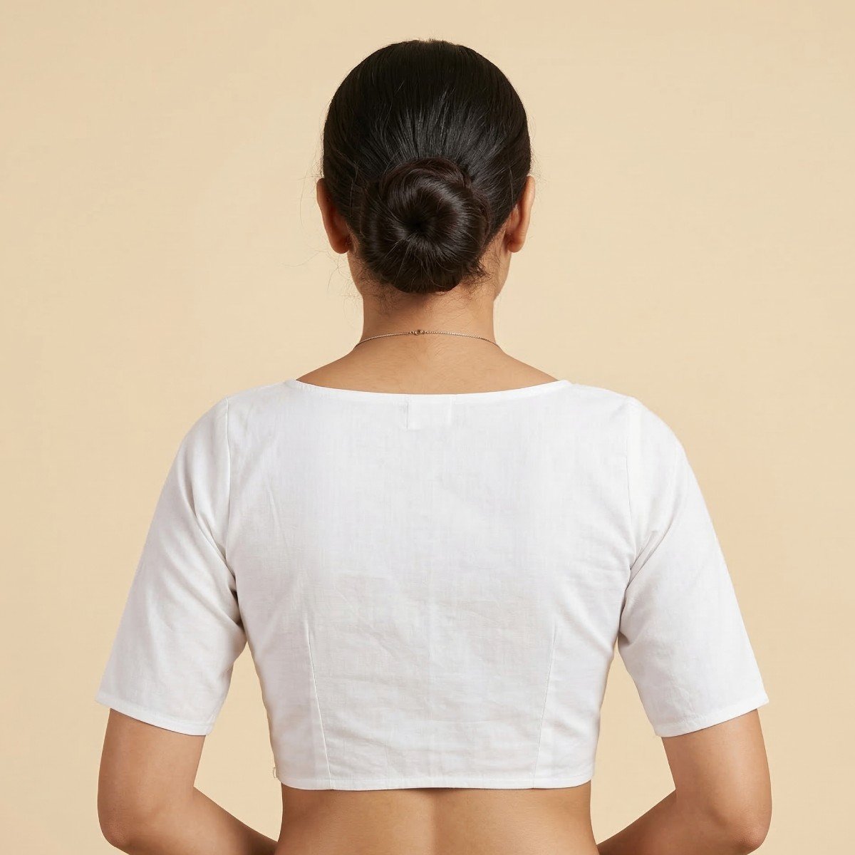 This beautiful non-padded blouse looks stunning with its smooth satin cotton fabric, providing the perfect blend of comfort and luster. This blouse boasts a graceful paan gala neckline, perfectly accentuating the neck area with a minimalist look. The plain style of this blouse makes it easy to pair with different types of sarees for casual as well as party wear. The tailored fit with half sleeves gives this blouse a perfect silhouette.