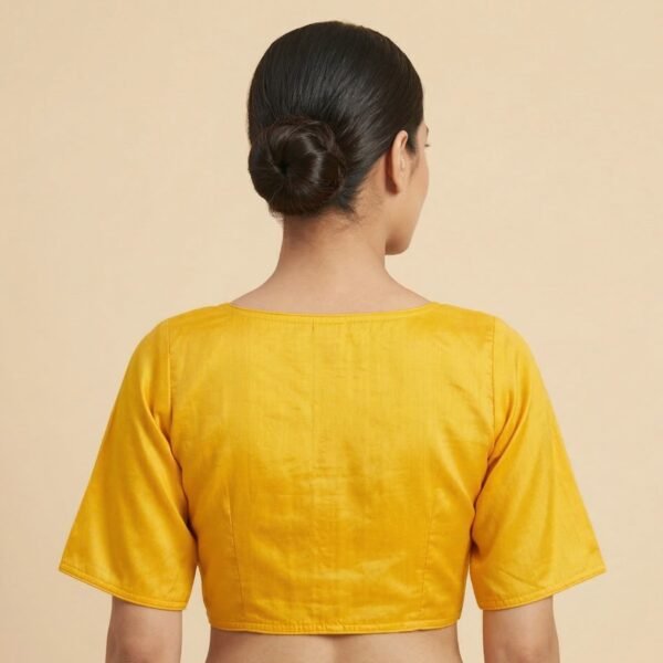 Yellow Satin Cotton Paan Gala Blouse